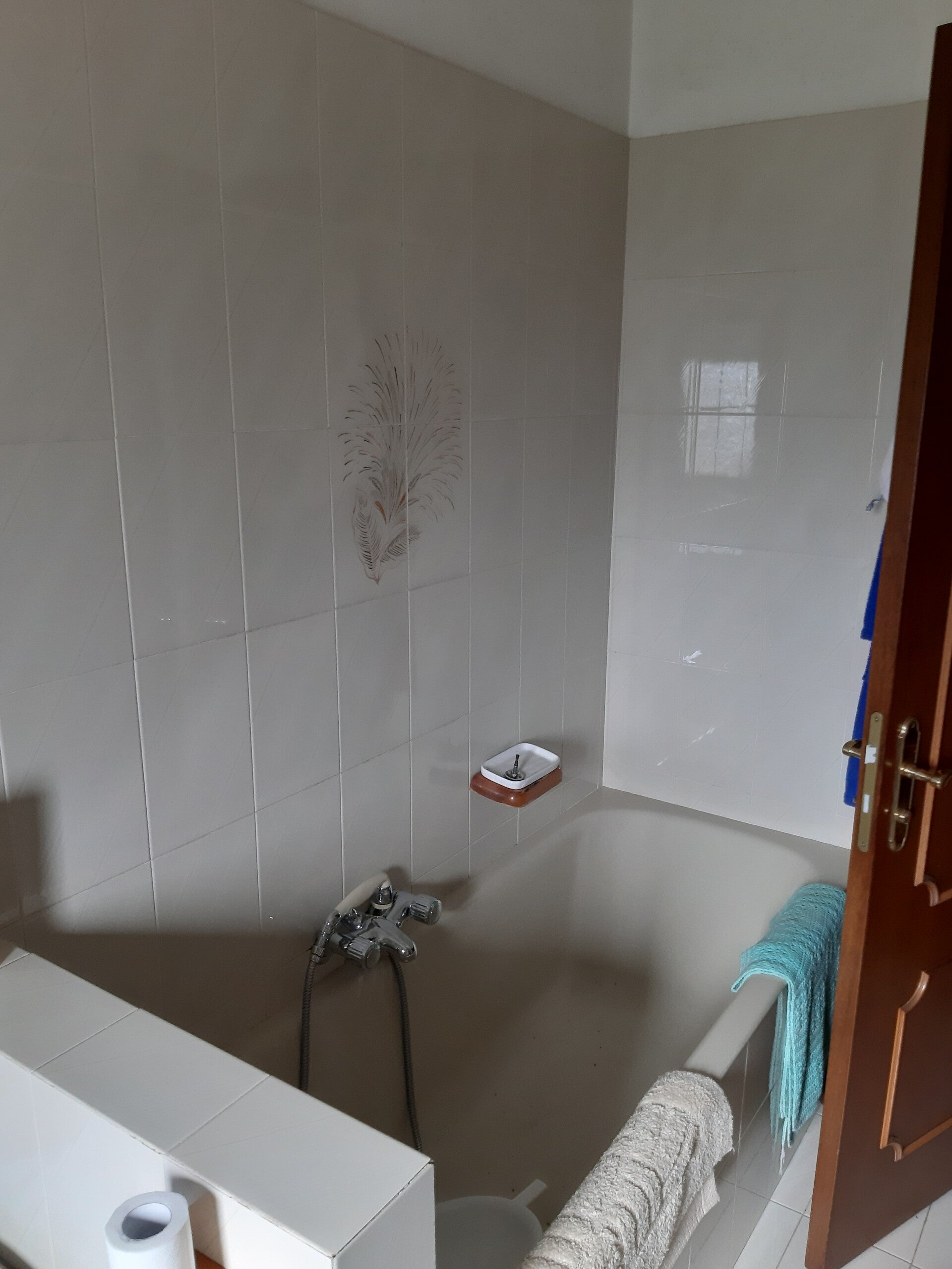 Das teilweise renovierte Obergeschoss beherbergt eine große Wohneinheit, bestehend aus zwei gemütlichen Wohnzimmern, zwei Wohnküchen, einem Flur, vier Schlafzimmern, einem Abstellraum und zwei Bädern, eines mit Dusche und das andere mit Dusche und Badewanne.