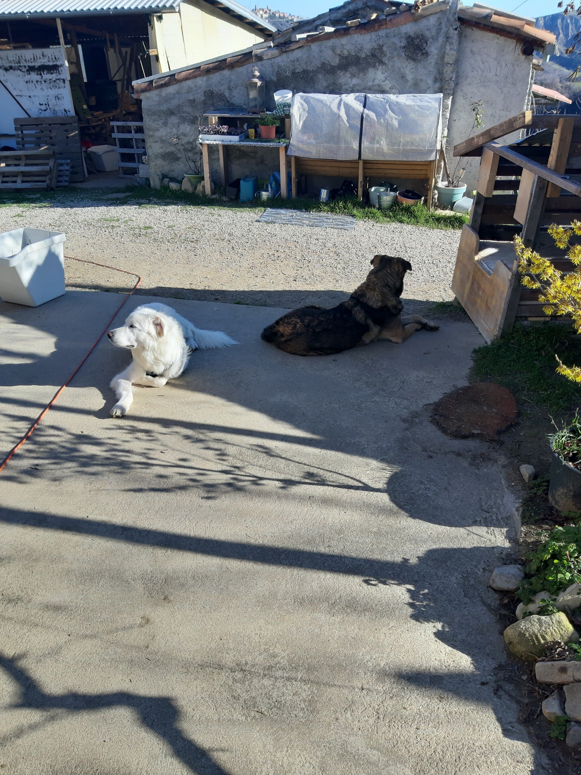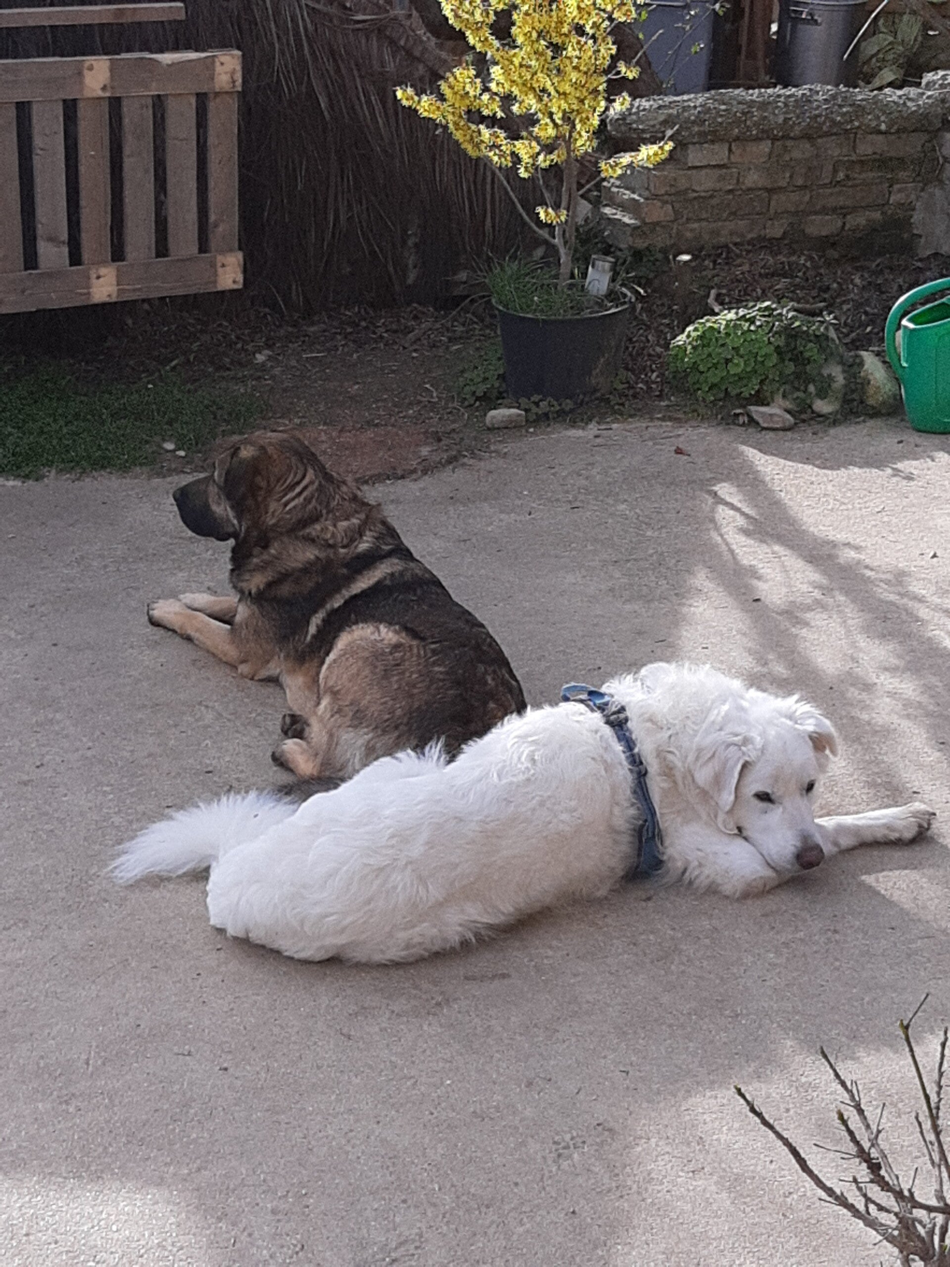 Wir haben einige Hunde hier auf dem Hof und sie freuen sich des Lebens.